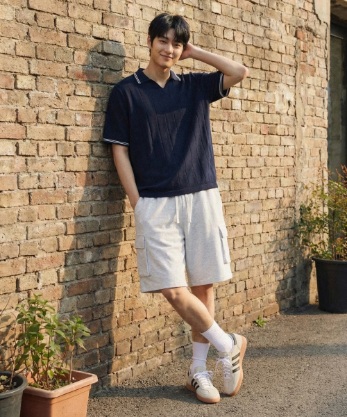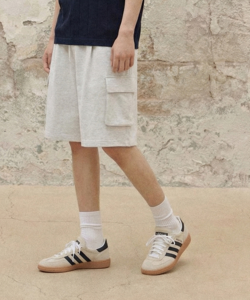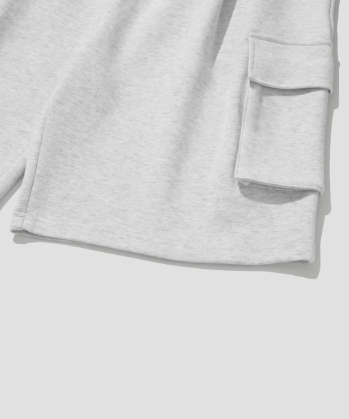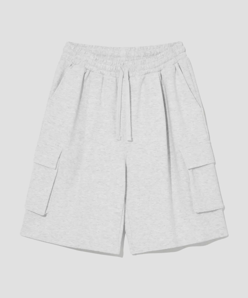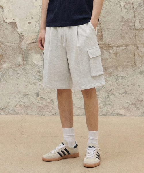 버뮤다 와이드 원턱 카고 스웨트 쇼츠 [화이트멜란지]