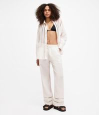 가볍고 통기성 좋은 리넨 트라우저. 하이웨이스트 와이드 레그 실루엣으로 다양한 아이템과 함께 쉽게 스타일링할 수 있습니다. 신축성 있는 드로코드와 두 개의 포켓이 편안함과 실용성을 더해줍니다. 좋아하는 탑과 함께 매치하여 편안하고 심플한 룩을 완성해보세요.
