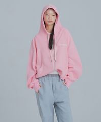 오버사이즈 와플 후드집업 - 핑크