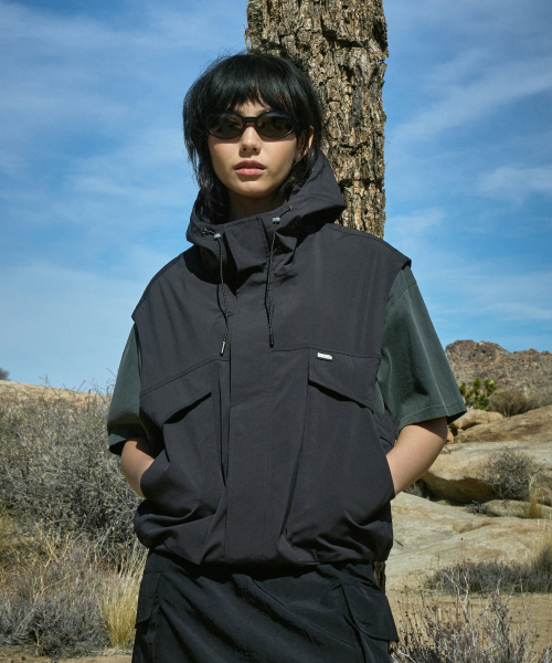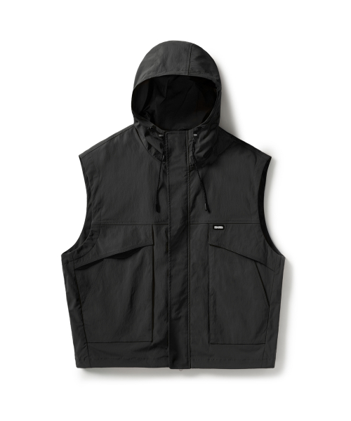 하이넥 후드 집업 우븐 베스트 블랙 FVT204