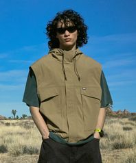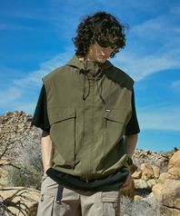 하이넥 후드 집업 우븐 베스트 카키 FVT204