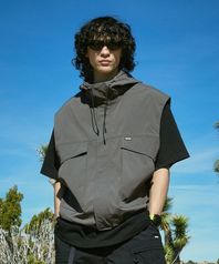 하이넥 후드 집업 우븐 베스트 다크그레이 FVT204