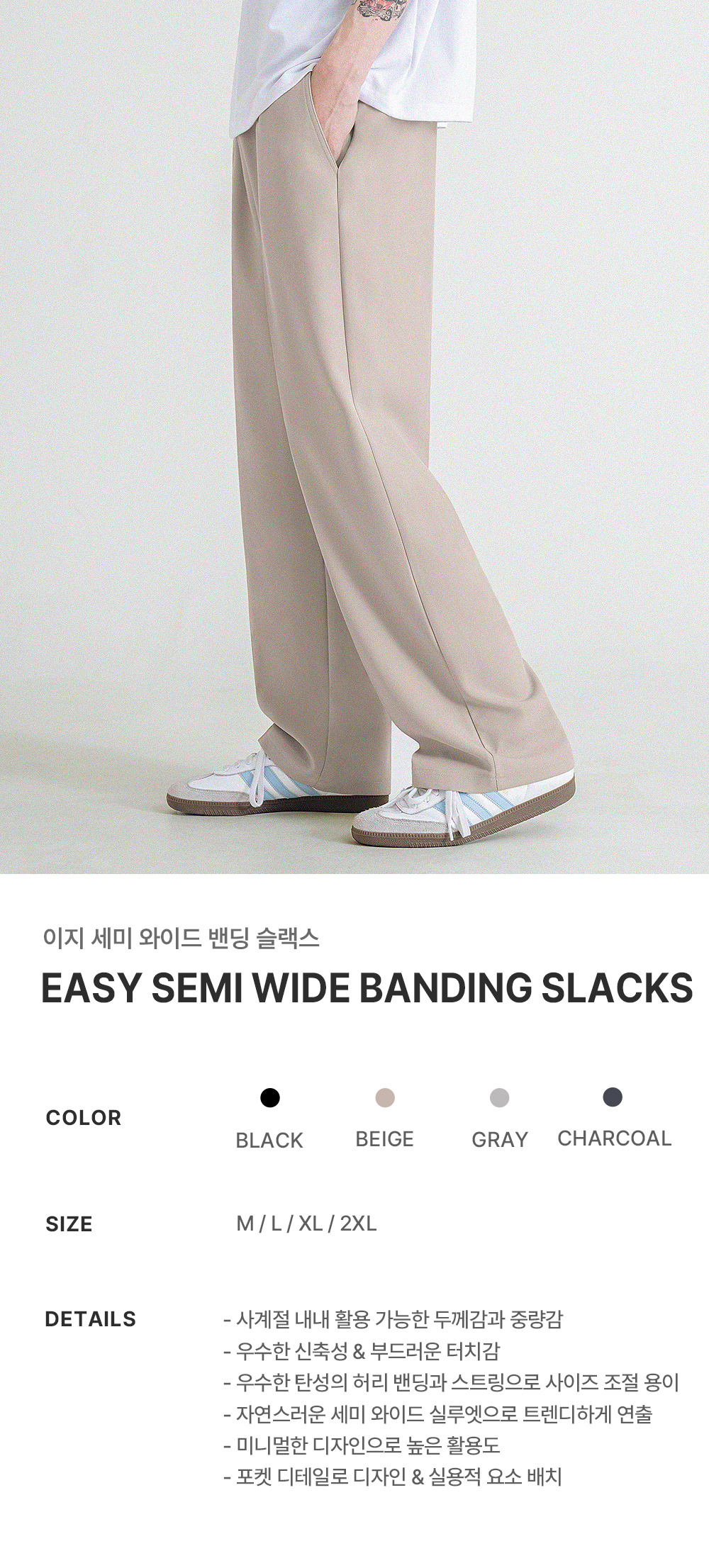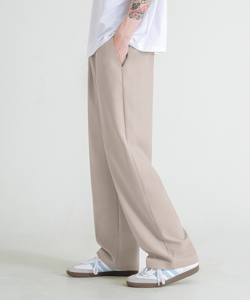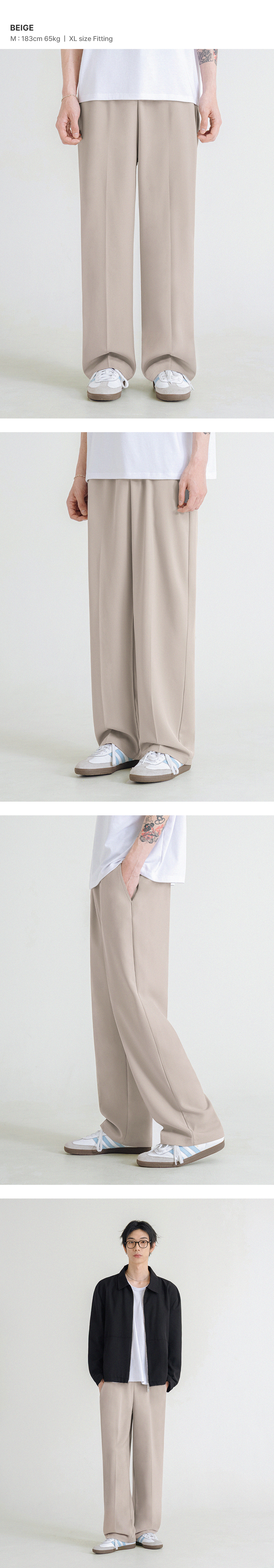 이지 세미 와이드 밴딩 슬랙스 [베이지]