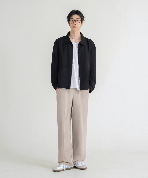 원턱 세미 와이드 히든 밴딩 슬랙스 [블랙]
