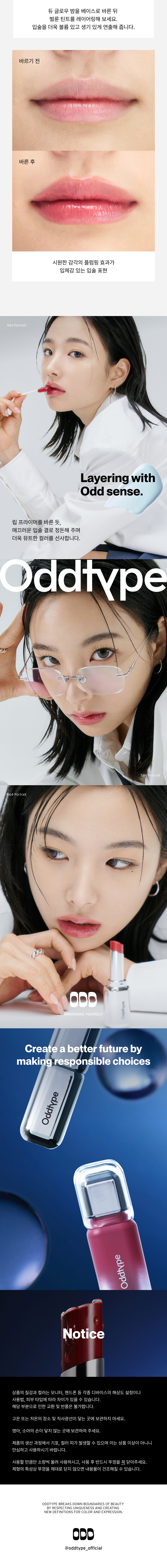 오드타입(ODDTYPE)은 한 가지 타입으로 정의할 수 없는 수많은 '나다움'을 새로운 관점으로 제안하는 메이크업 브랜드입니다.