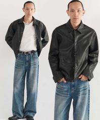비크 루즈핏 워싱 신세틱 레더 자켓_블랙