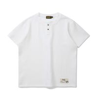 Waffle henley neck Tee White