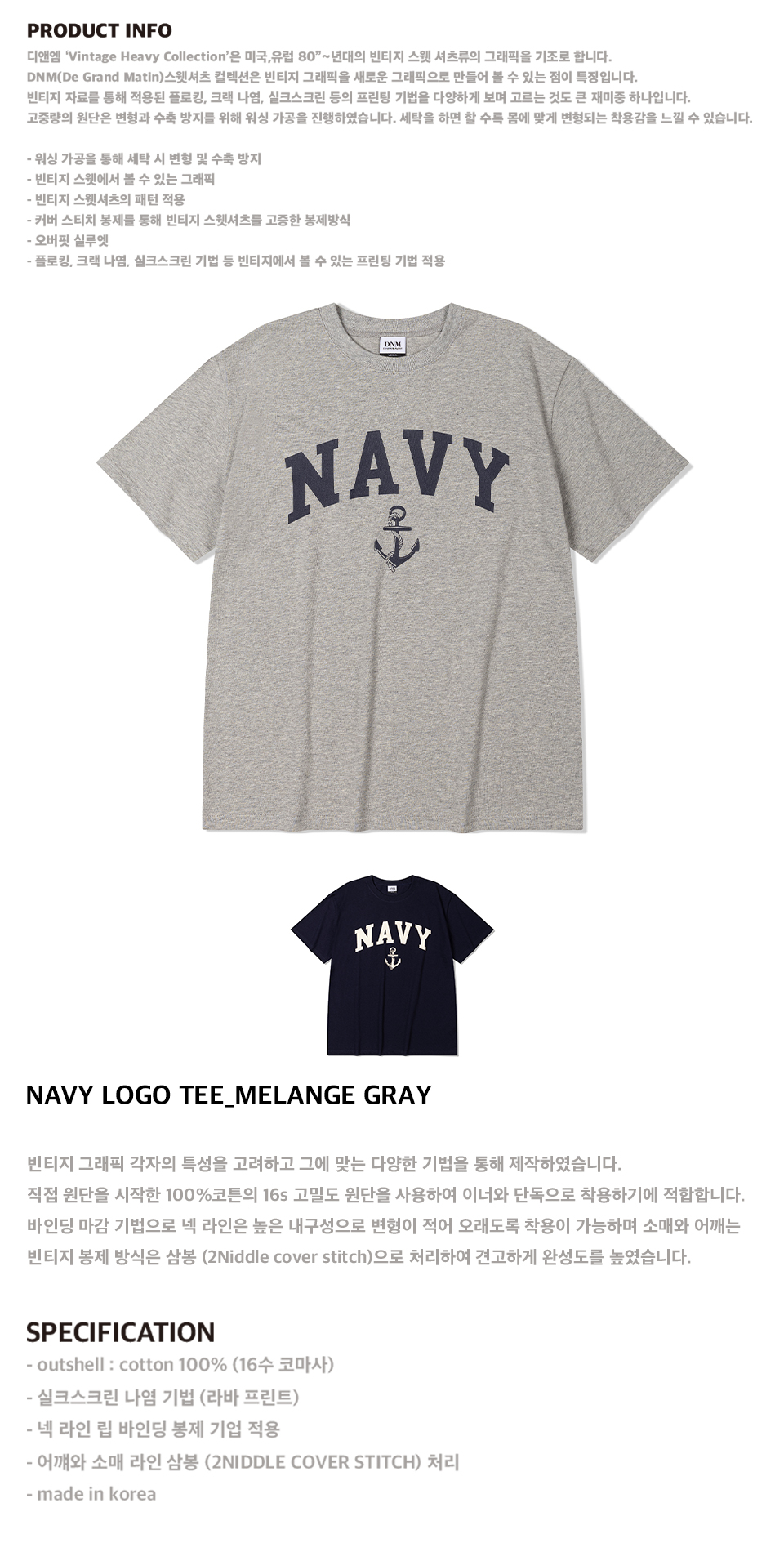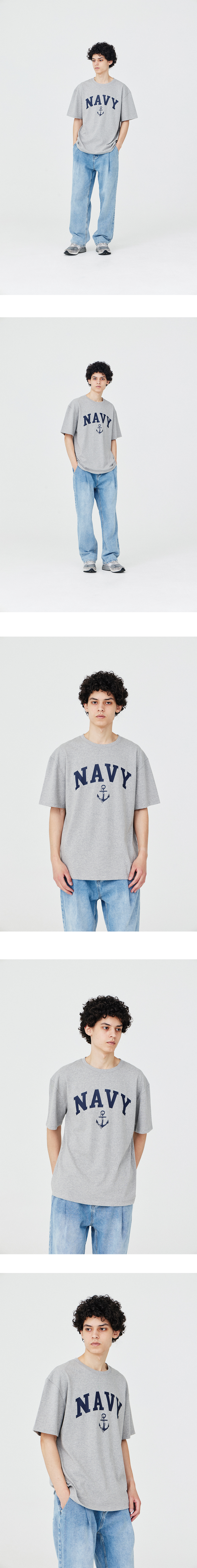 NAVY LOGO TEE_MELANGE GRAY