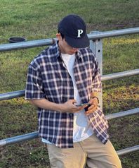 시어서커 체크 반팔 셔츠 [2409 네이비]