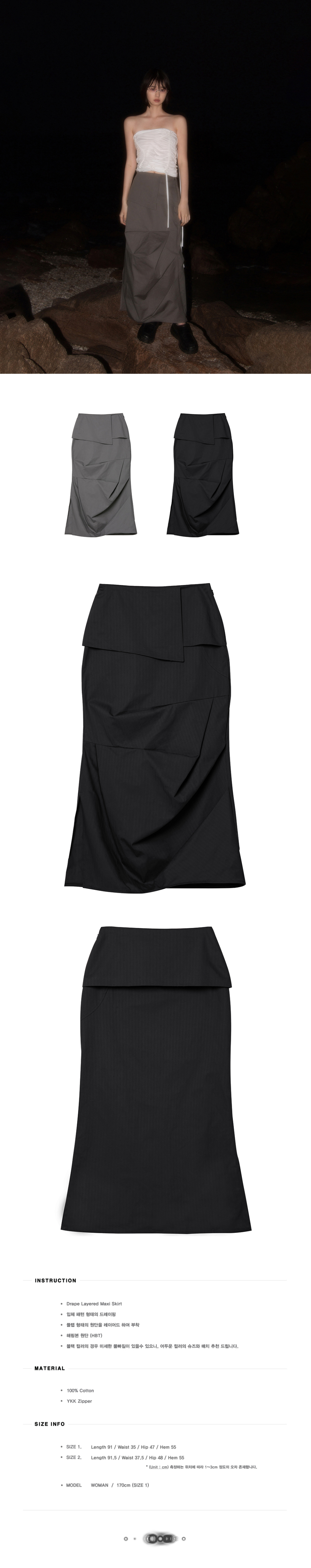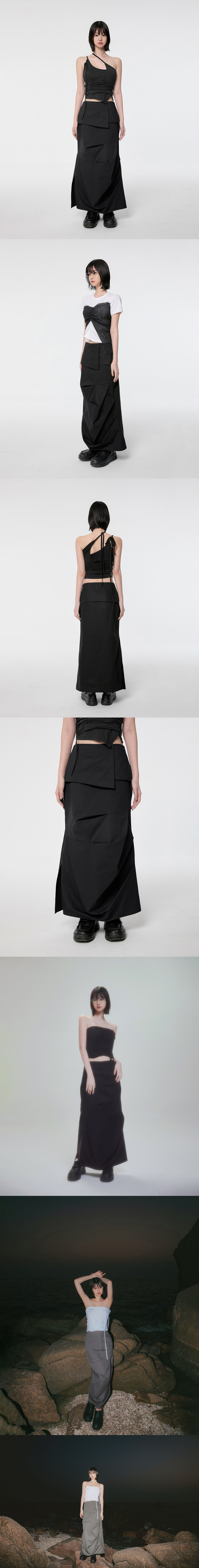 Asymmetrical Draped Long Skirt (FL-263_Black)