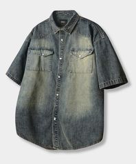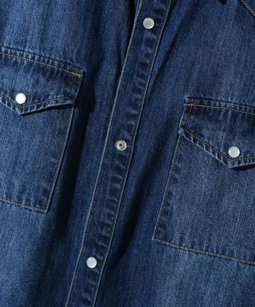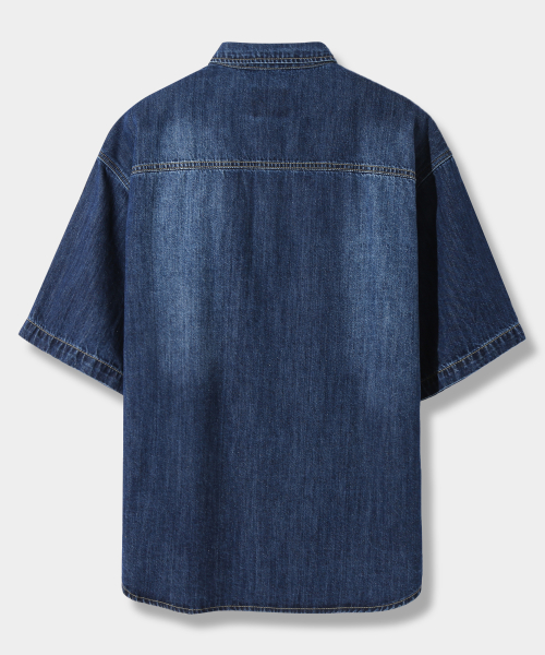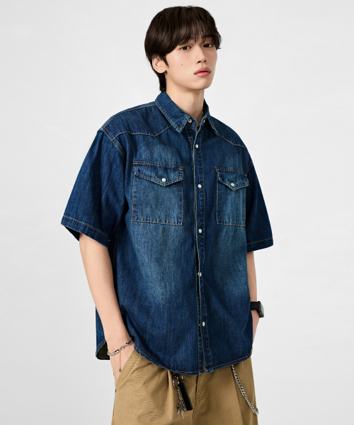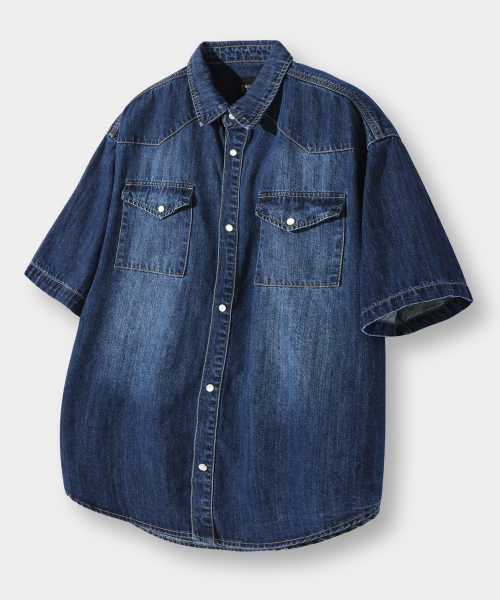 바이오 웨스턴 데님 반팔 셔츠_더스트 인디고