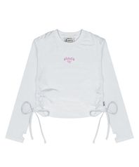 WXT039 루나키후 플로럴 로고 셔링 롱슬리브 (WHITE)