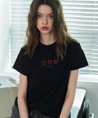 카롤라인 체인 자수 크롭 반팔티 블랙