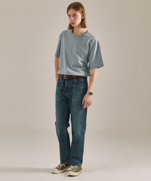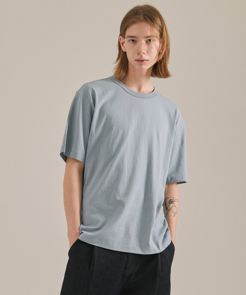 UNI 면16수 릴렉스핏 반팔티셔츠 라이트블루 LATS0109