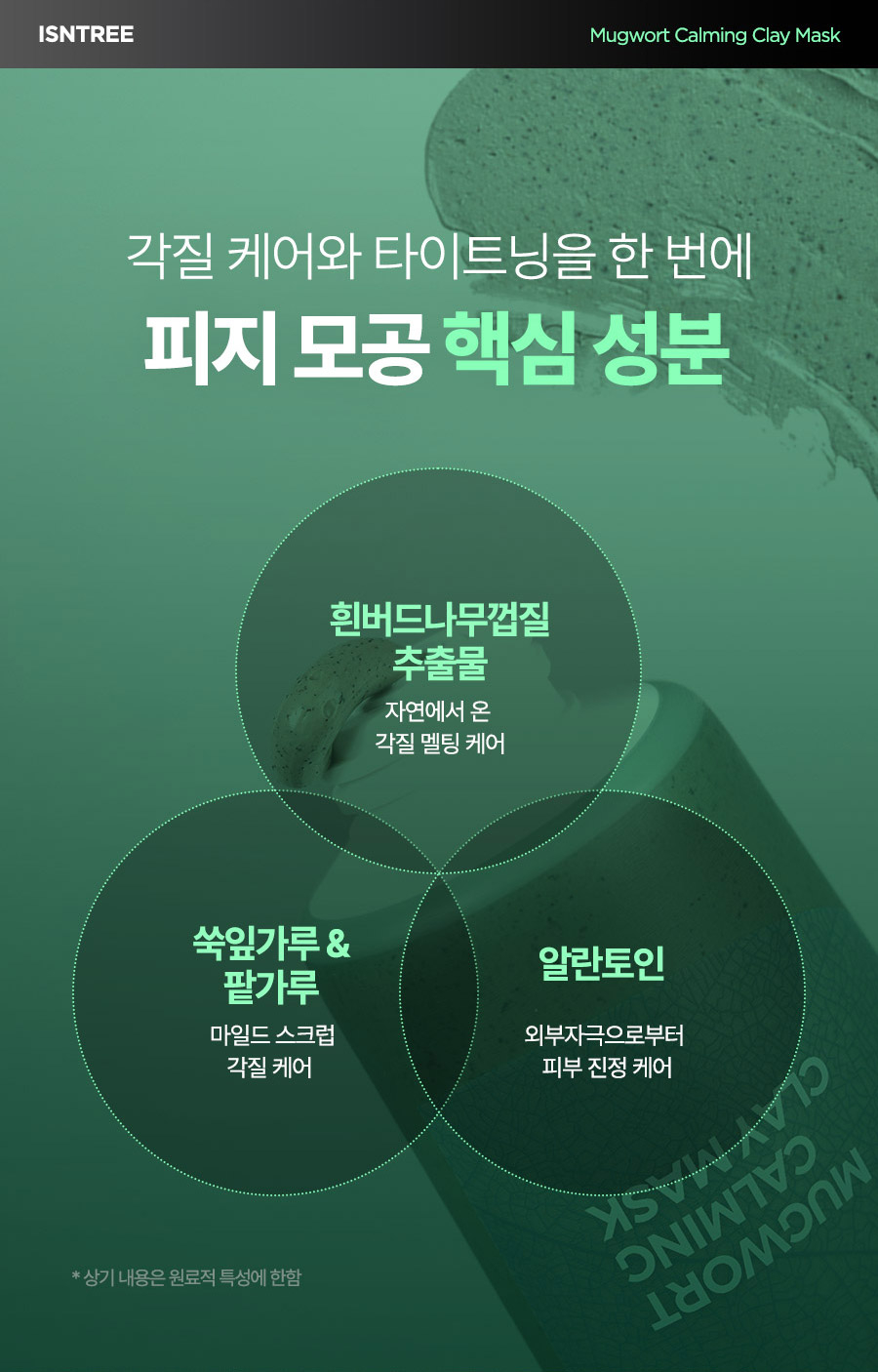 이즈앤트리(ISNTREE)는 피부에 자극을 줄 수 있는 유해 의심 성분을 엄격히 배제하고 피부에 꼭 필요한 자연 원료만을 정직하게 담아 제품을 개발합니다.