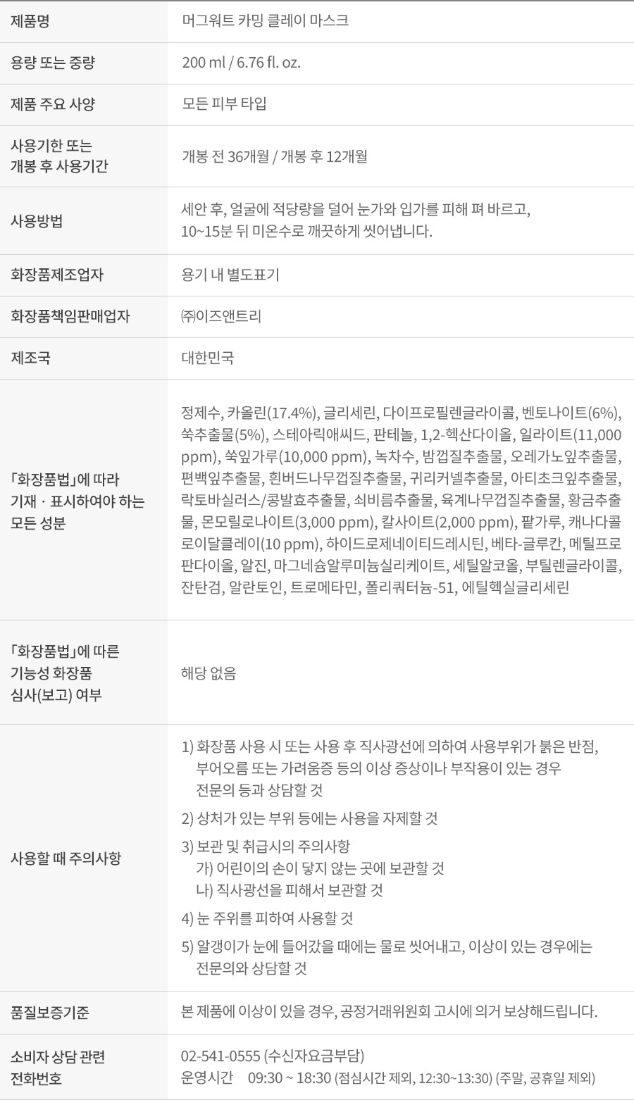 머그워트 카밍 클레이 마스크 200ml