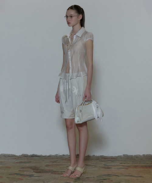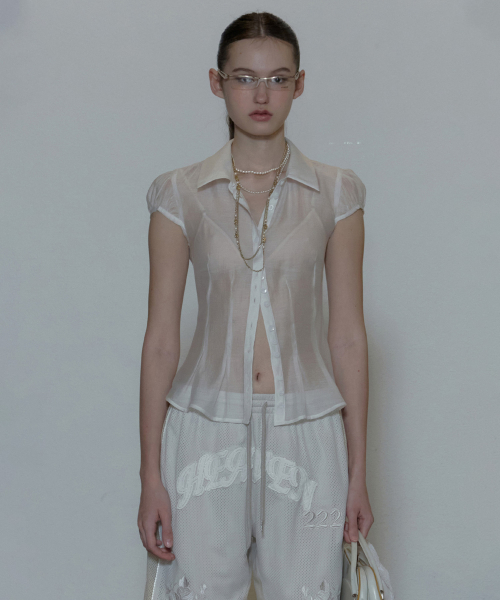 M : Length 56.5 / Shoulder 37 / Chest 43 / Sleeve 12.5 / Hem 43