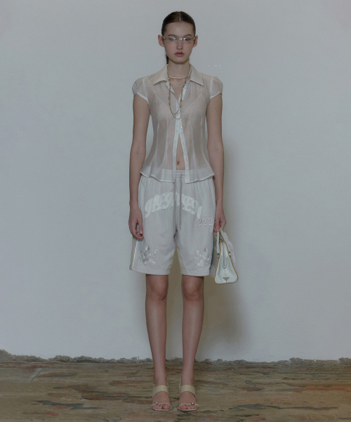 L : Length 58.5 / Shoulder 39 / Chest 45 / Sleeve 13.5 / Hem 45
