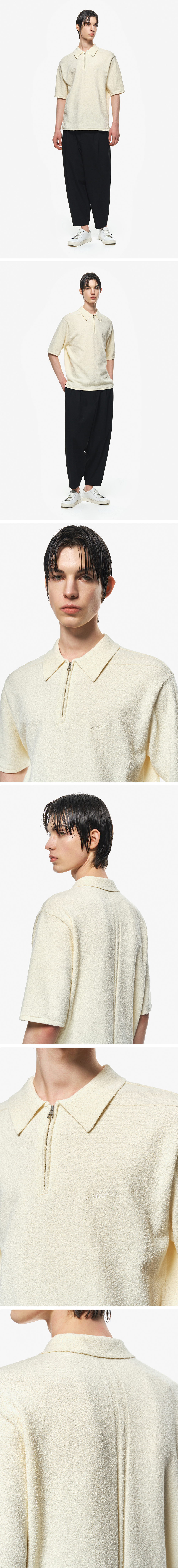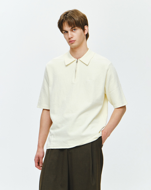 - 지오송지오 하프집업 부클 반팔 니트
