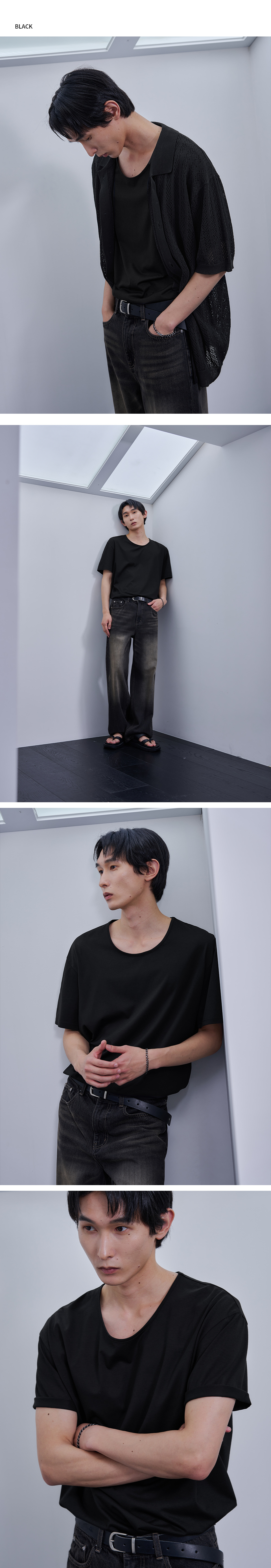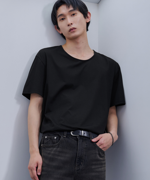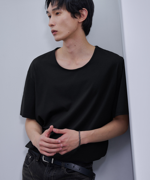 실켓 코튼 U넥 티셔츠 [BLACK]