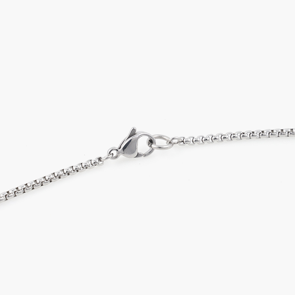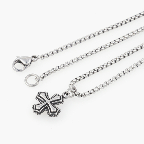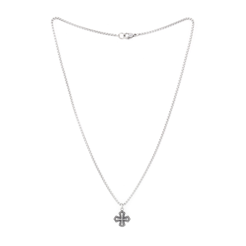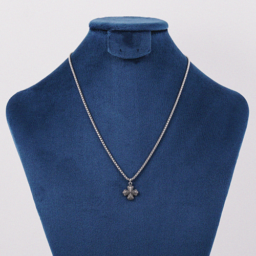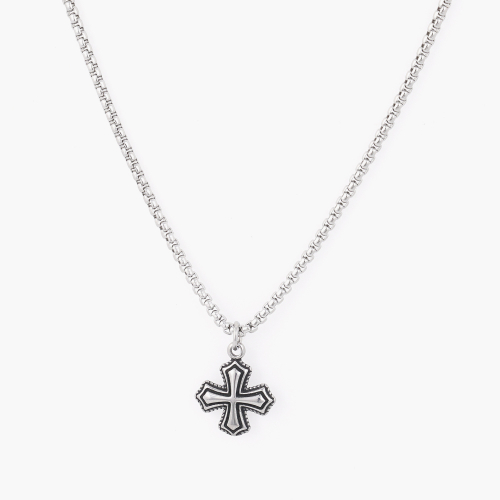가볍고 착용감이 좋은 라운드큐브체인에 써지컬스틸로 제작된 유니크한 정십자 팬던트가 포인트로
