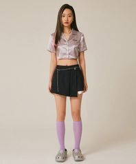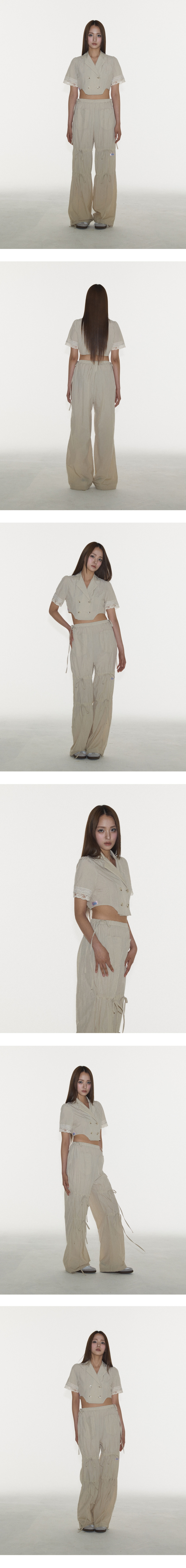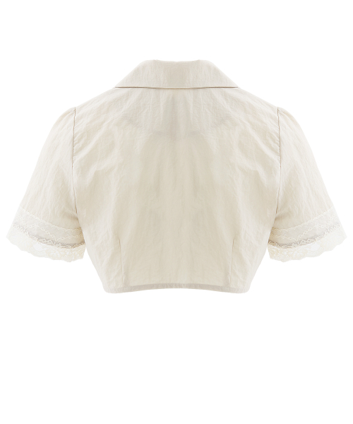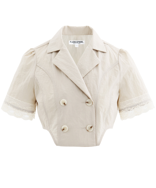 코르셋 자켓 셔츠. 몸판 절개와 소매 레이스를 가미.