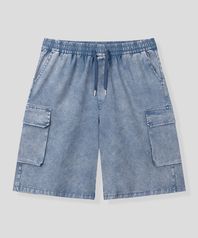 텐셀 피그먼트 워싱 카고 하프 팬츠 [스카이블루]