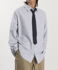 오버핏 옥스포드 스트라이프 셔츠 (GREY)