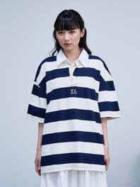 스트라이프 럭비 카라 반팔 티셔츠 [네이비]