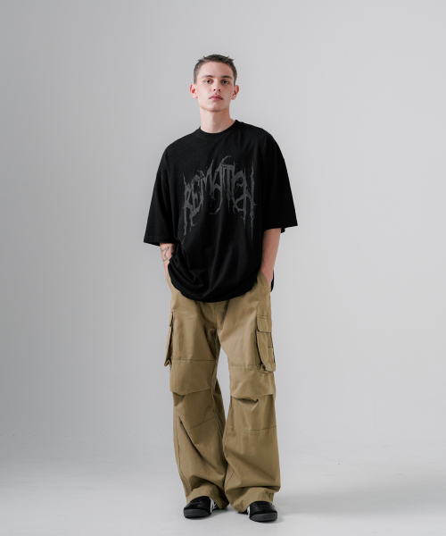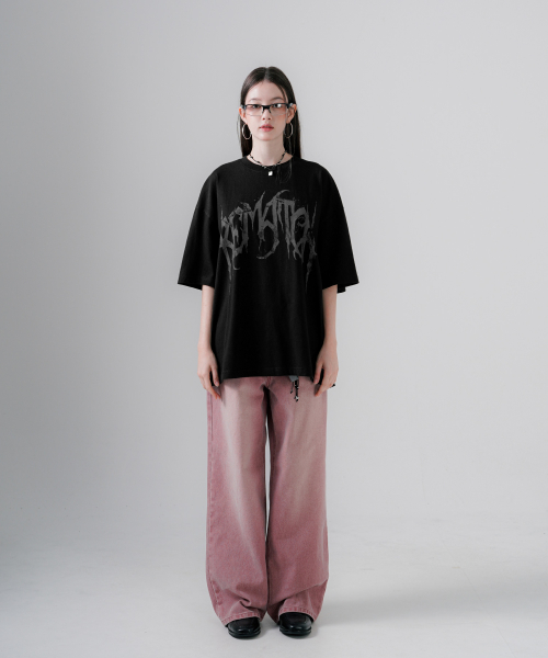 어드벤쳐 폰트 피그먼트 오버핏 반팔티셔츠 다크그레이 FST705