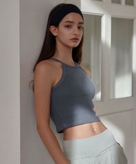 여성 요가복 DEVI-TS0049-네이비 필라테스 피그먼트 홀터 슬리브리스