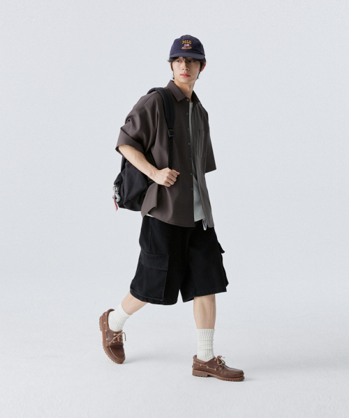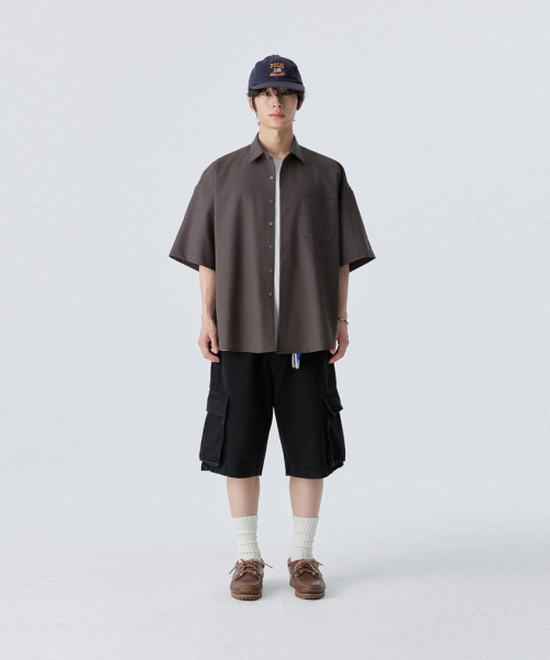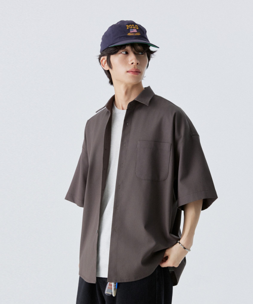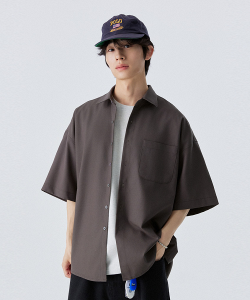 [M~4XL] 올데이 린넨 오버핏 반팔 셔츠_차콜