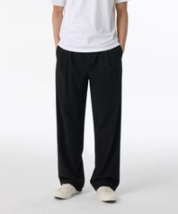 시어서커 원 턱 와이드 밴딩 팬츠 [블랙]