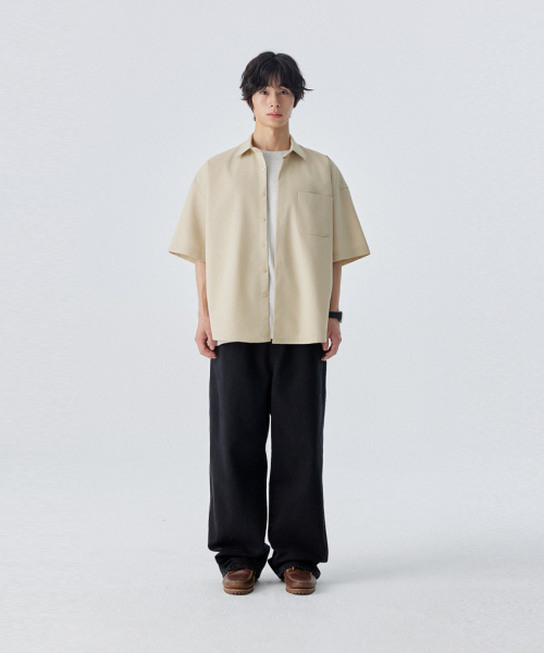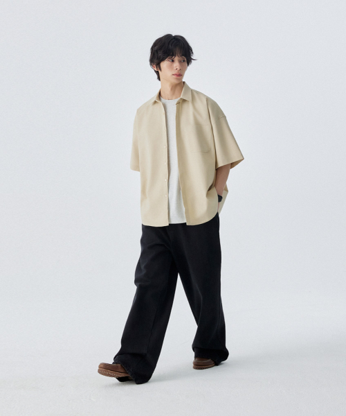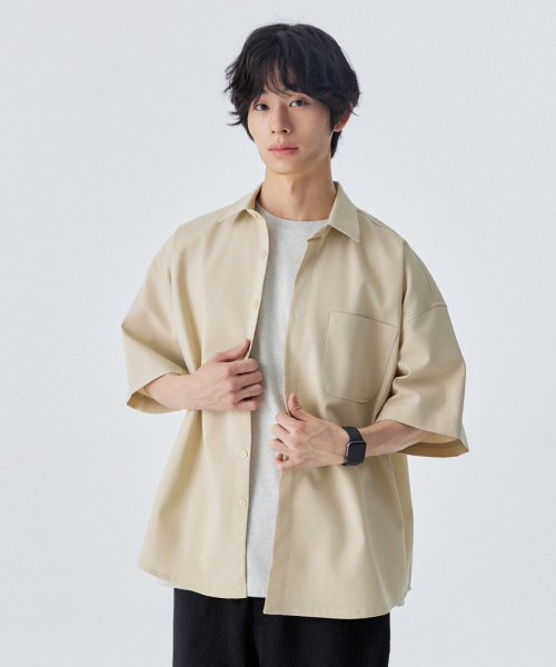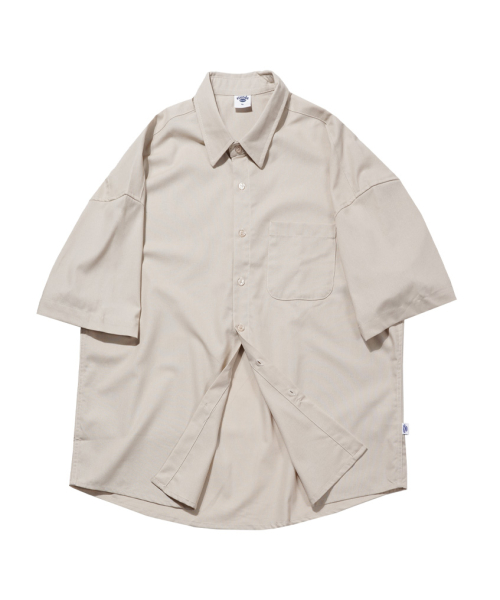 [M~4XL] 올데이 린넨 오버핏 반팔 셔츠_베이지