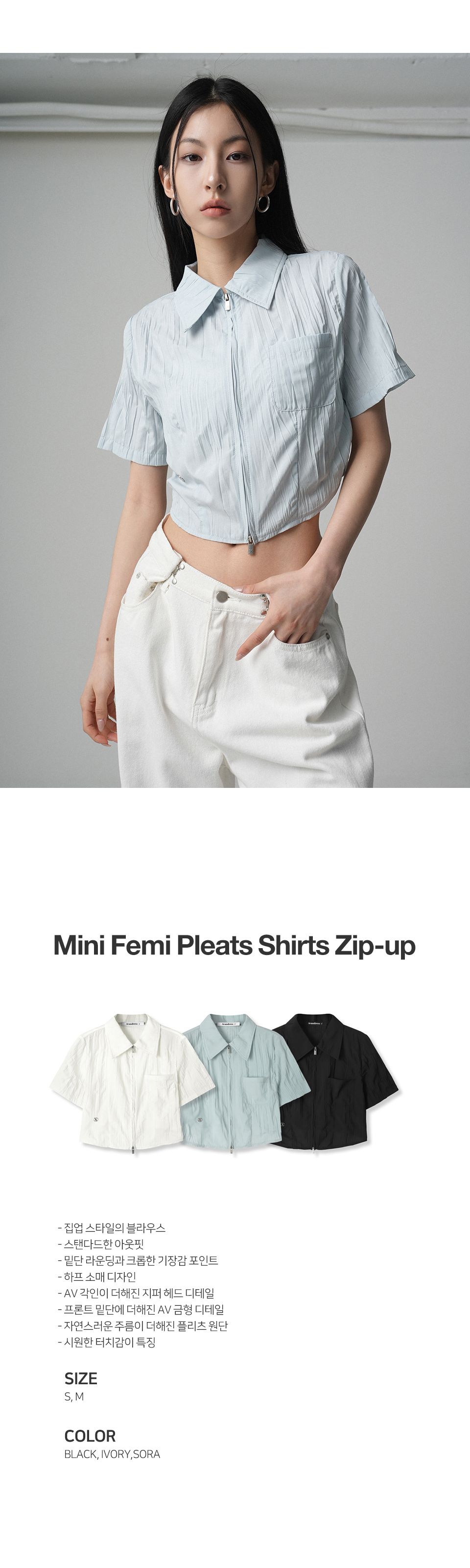 Mini Femi Pleats Shirts Zip-up - 3COL