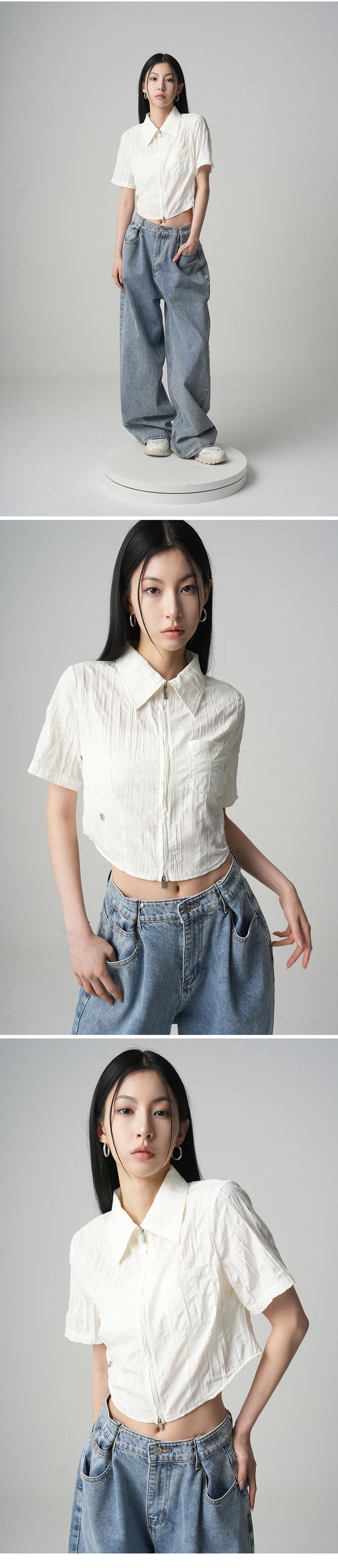 Femi Pleats Shirts Zip-up - 3COL