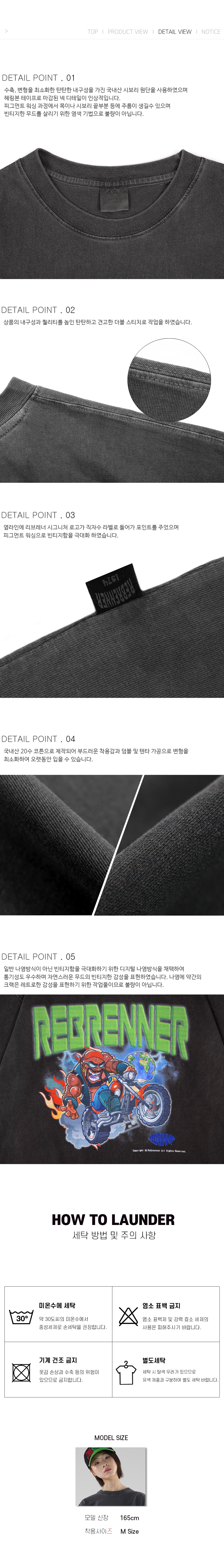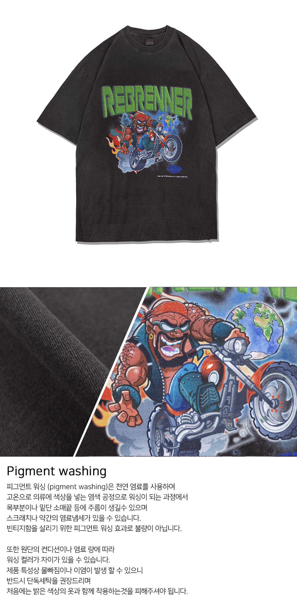 투어바이크 피그먼트 오버핏 반팔티셔츠 차콜