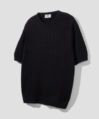 코튼 모달 워셔블 크루 넥 케이블 니트 [블랙]