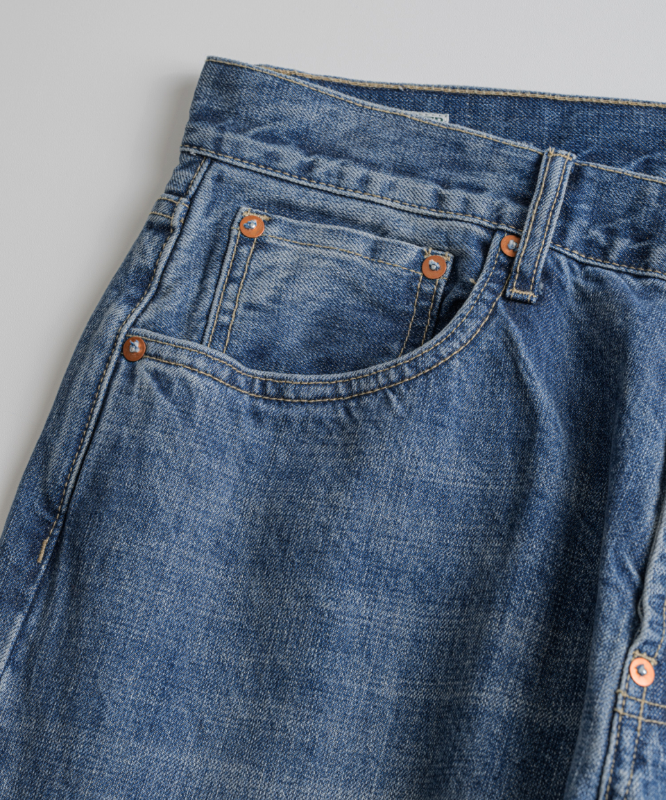 밑위가 깊고 루즈한 실루엣의 미드 웨이스트 핏을 구현해 당시의 시대감을 재현했으며, 이번 시즌부터는 구리 도금 리벳이 적용되어 빈티지 무드와 견고함을 한층 강화했습니다.