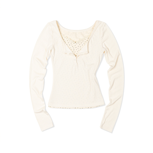 레이스 레이어드 라운드 이너 긴팔티 [IVORY] KCL.