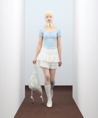 85-VIVA112 레이스 스트랩 크롭 반팔 숏 슬리브 스카이블루