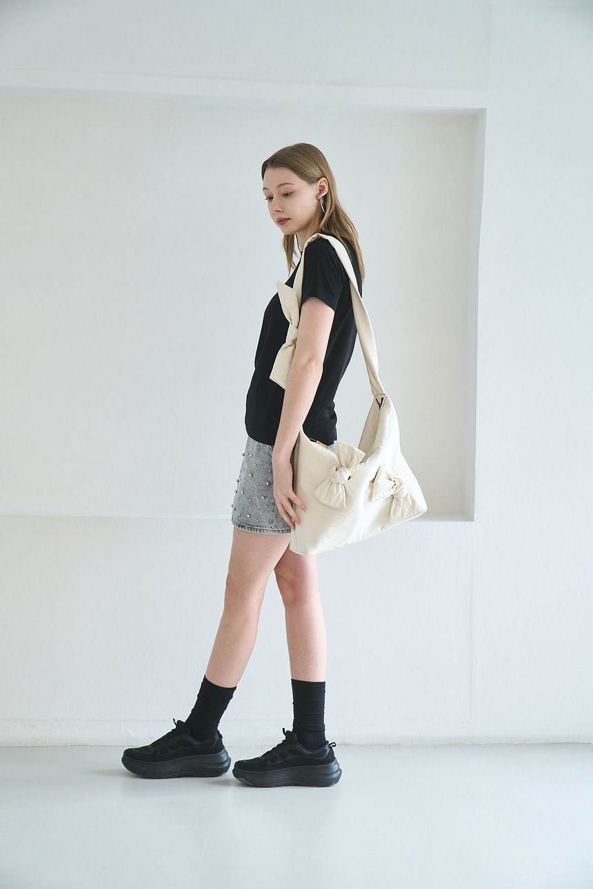 묶음 리본 디테일로 유니크하고 포인트 있게 연출 가능합니다.
