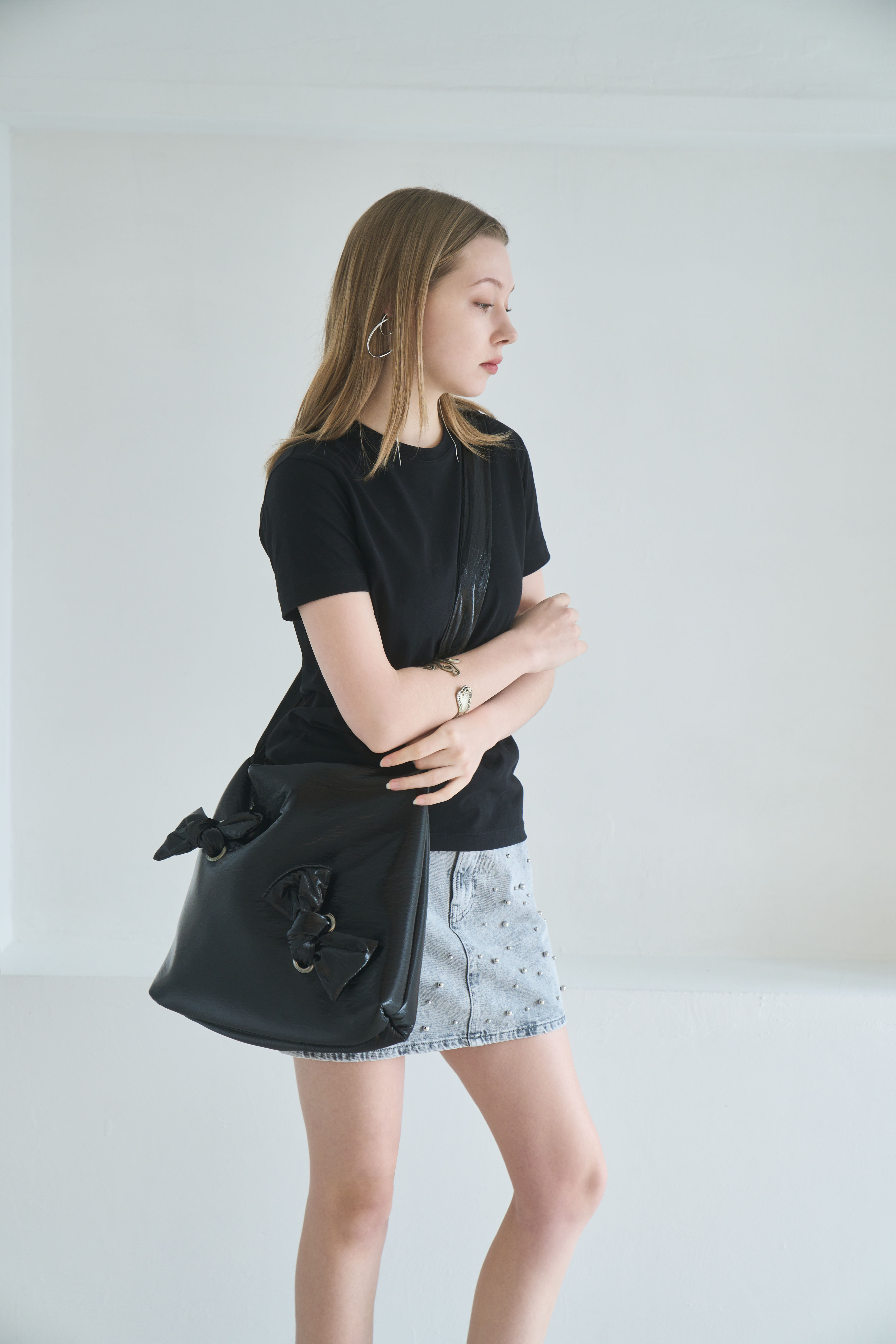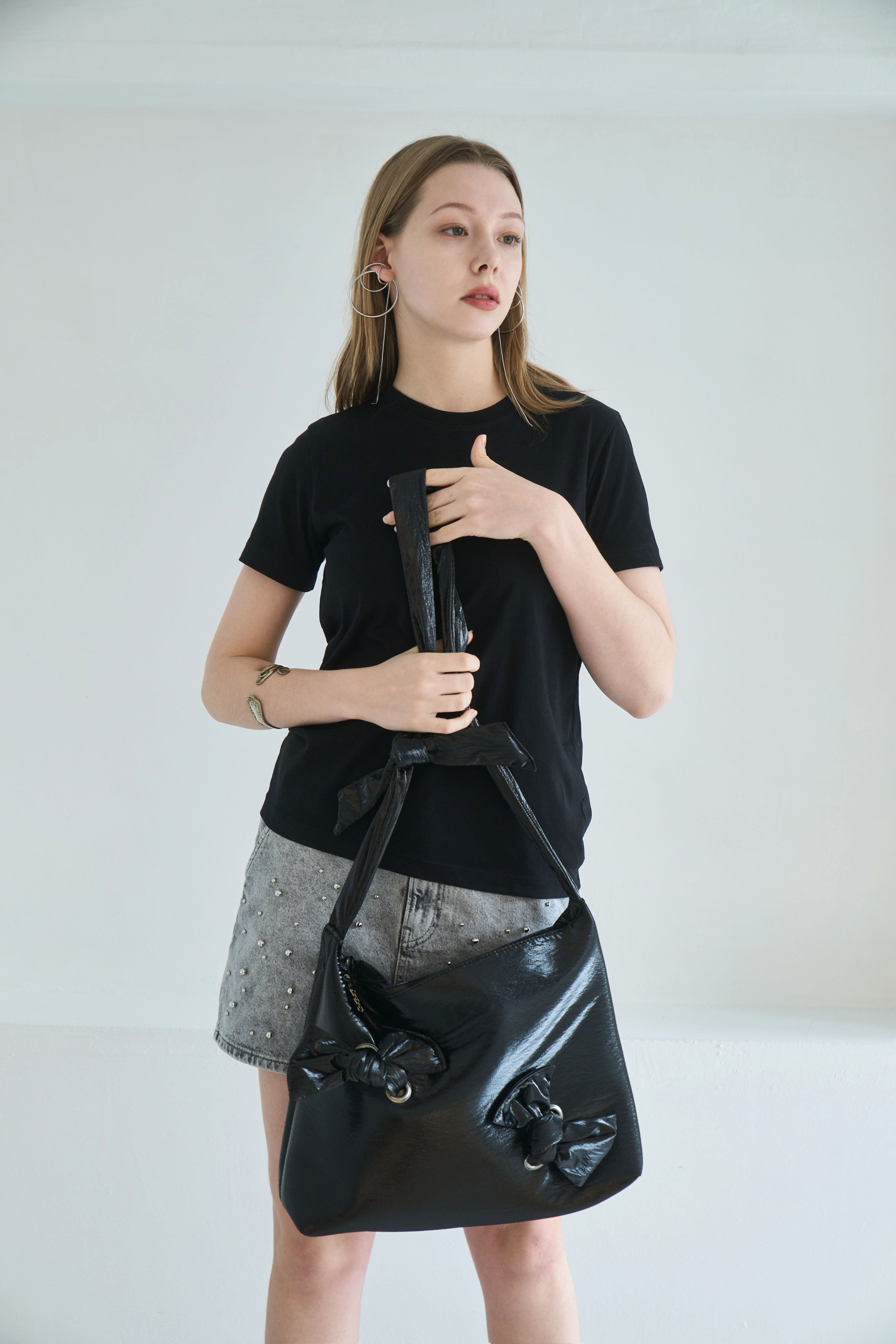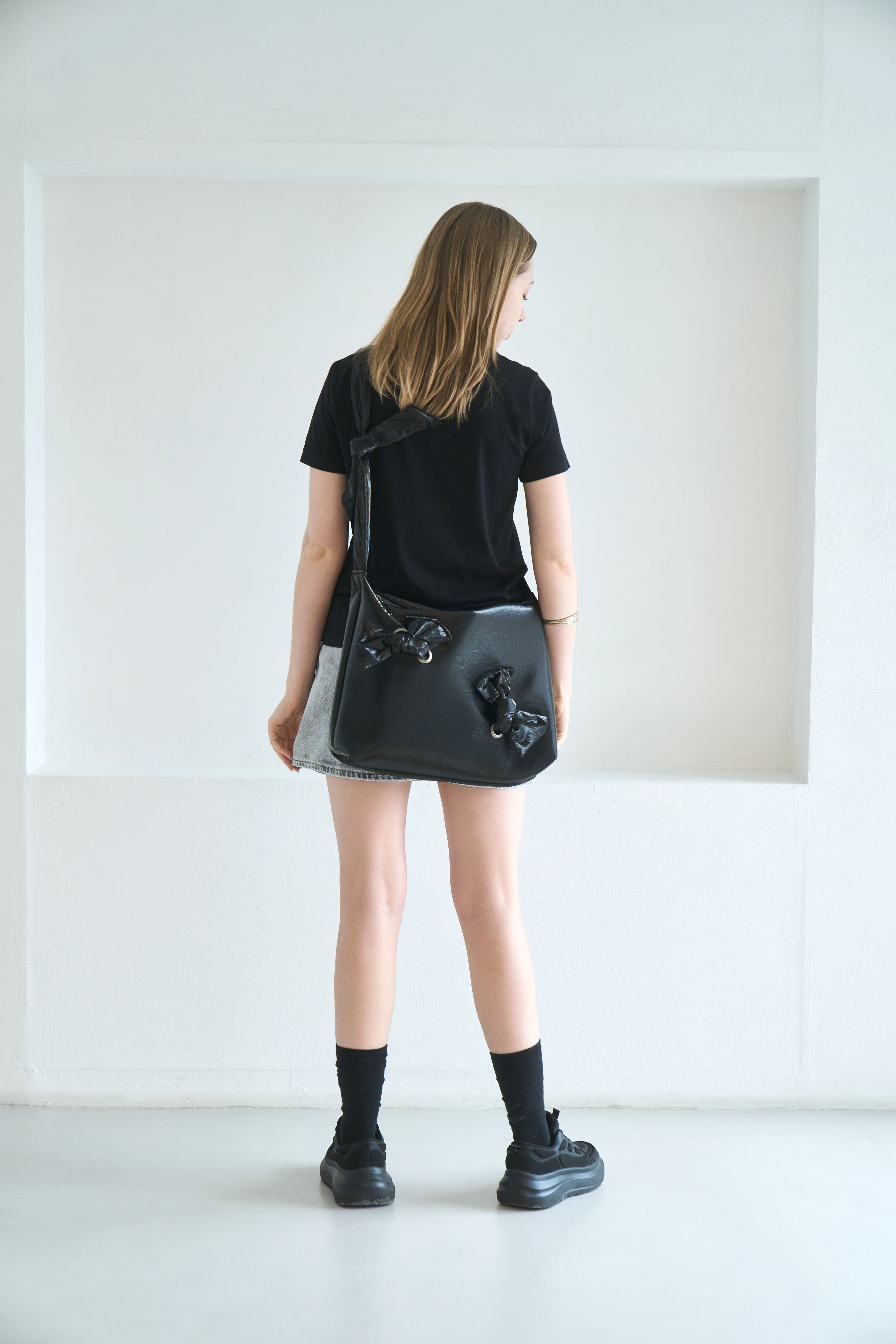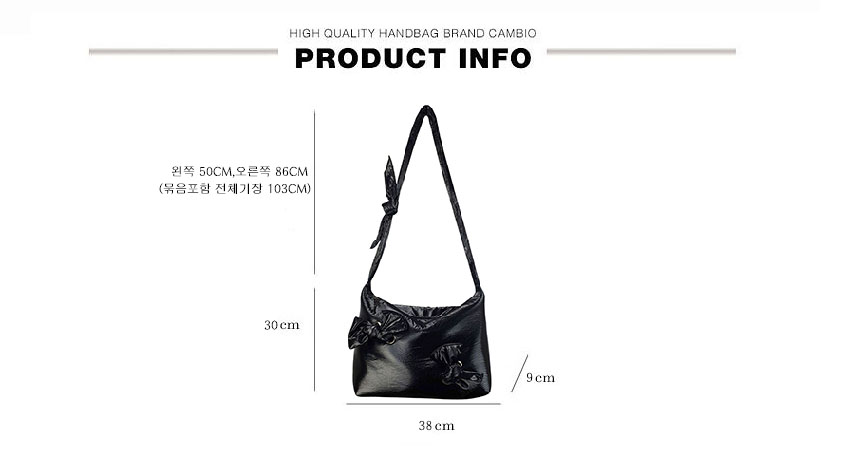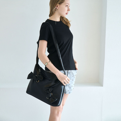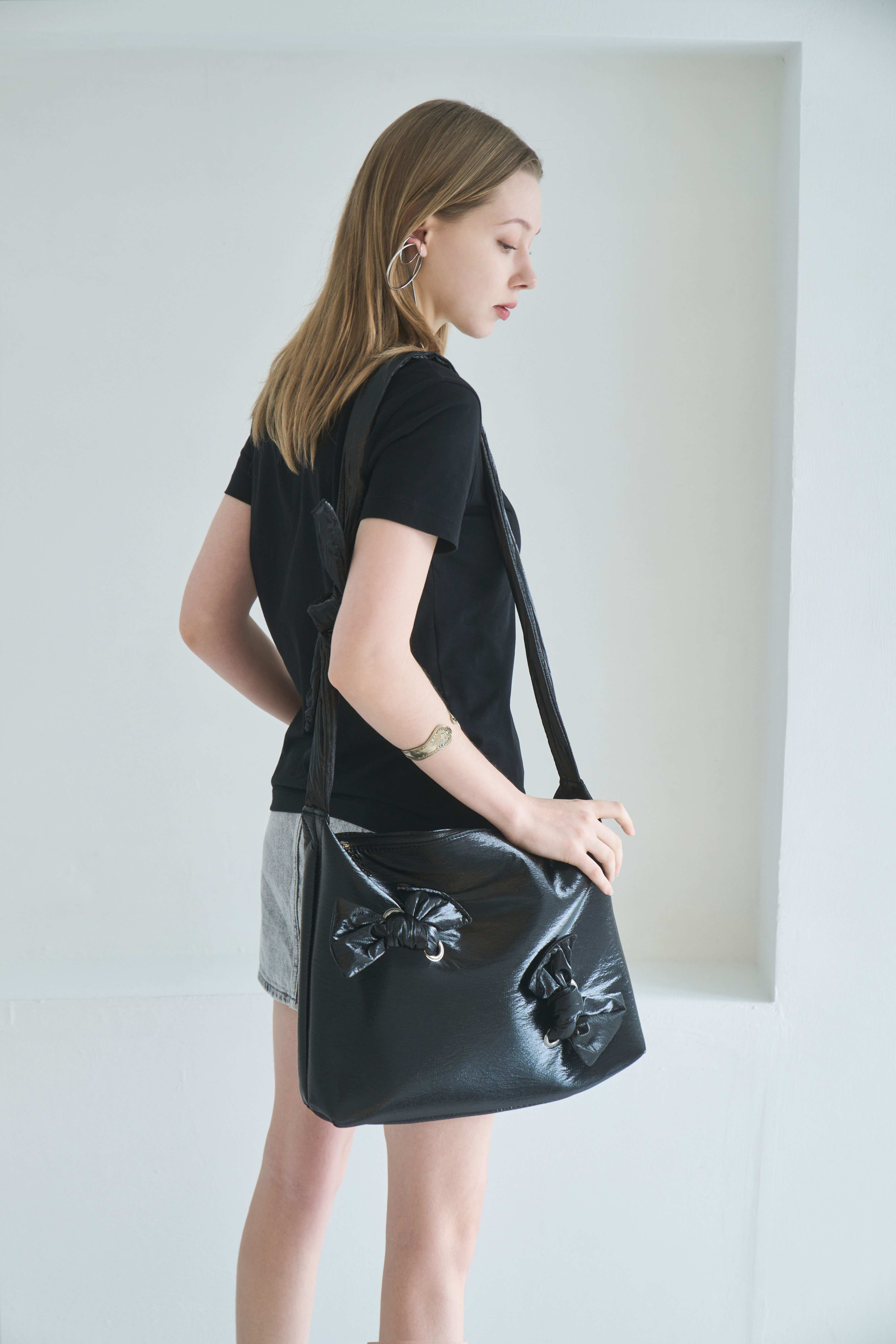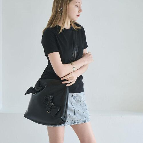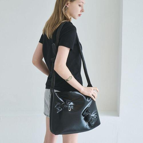 리본 타이 스타일로 스트랩을 매듭지어 길이 조절이 가능하여 숄더와 크로스로 맬 수 있습니다.