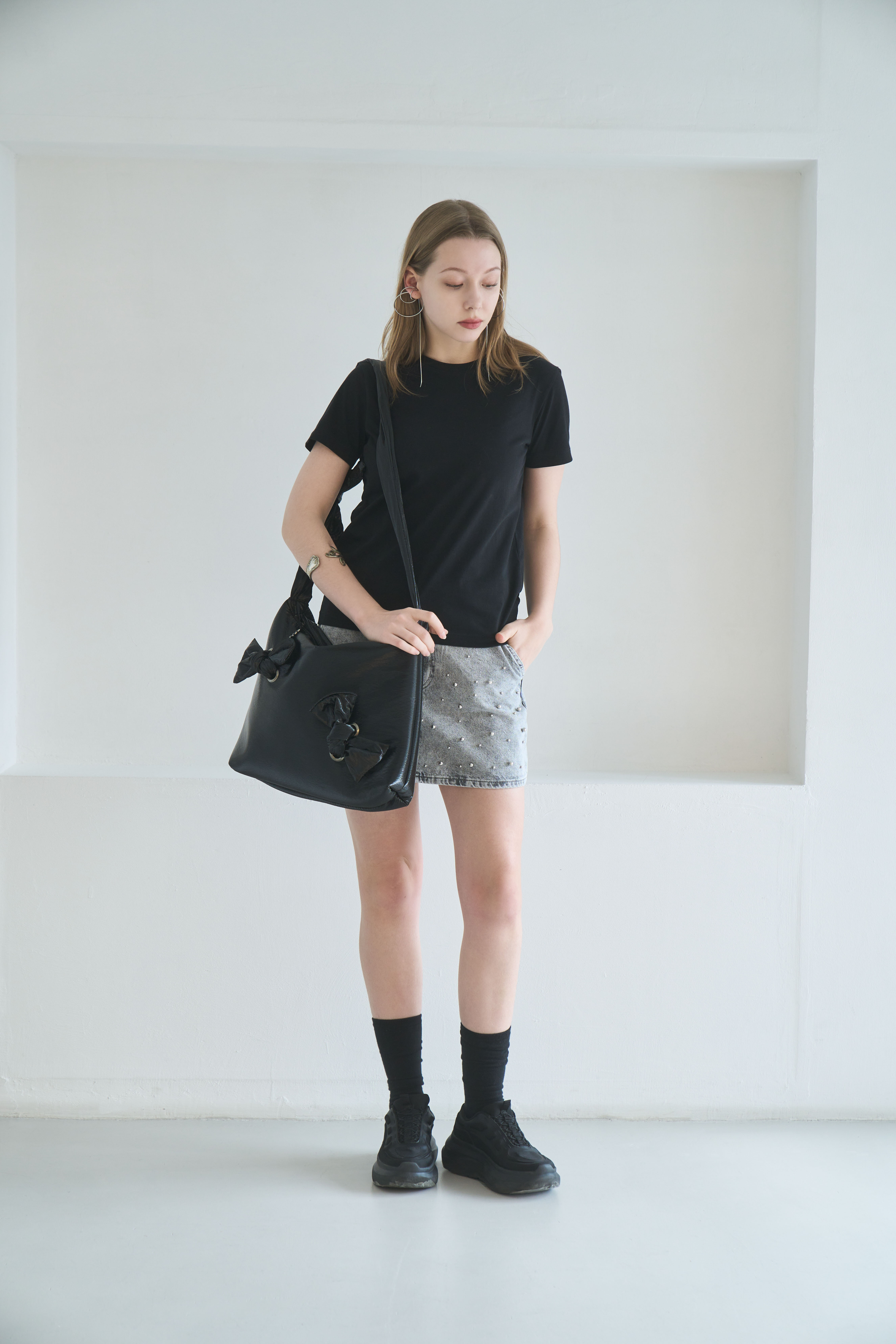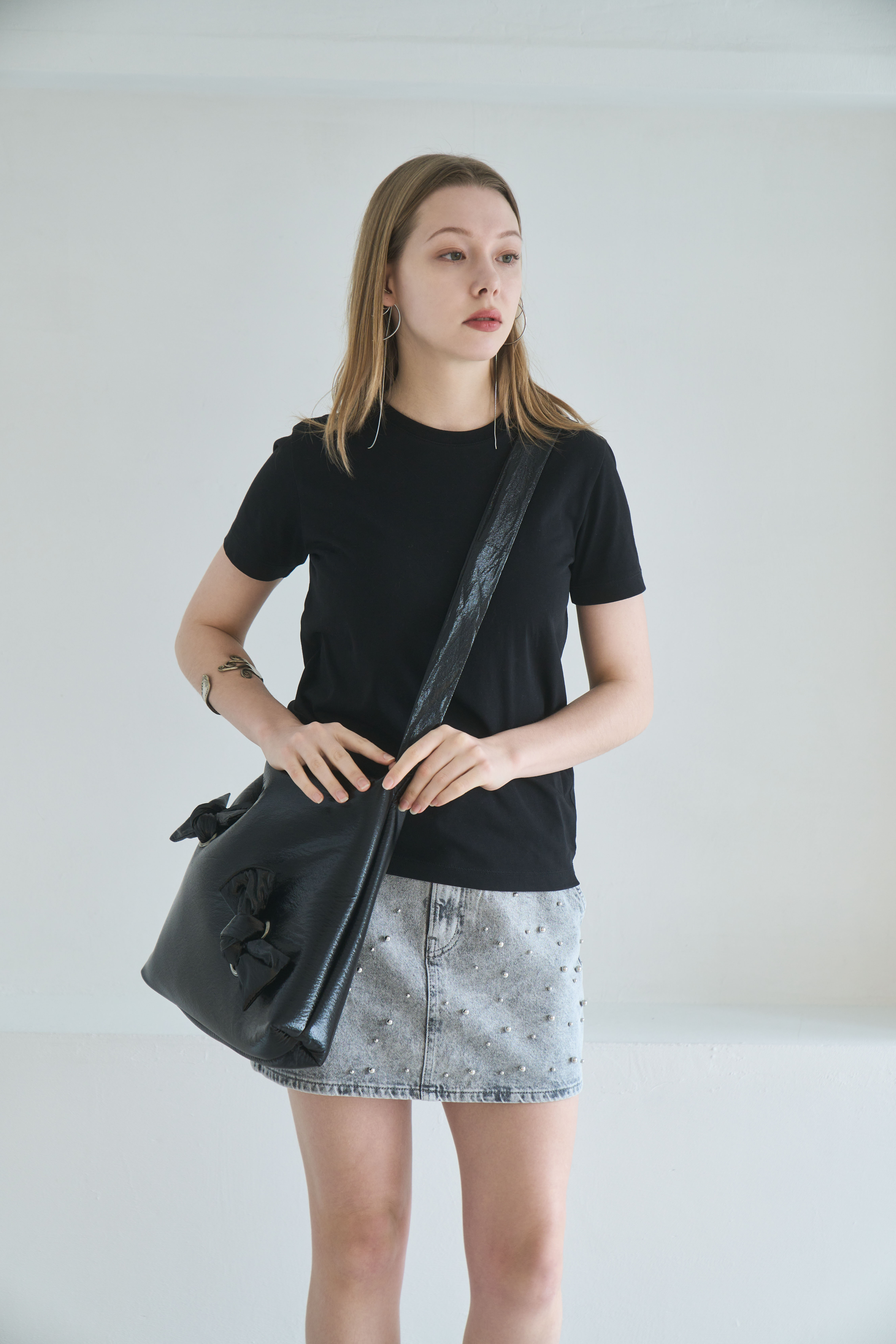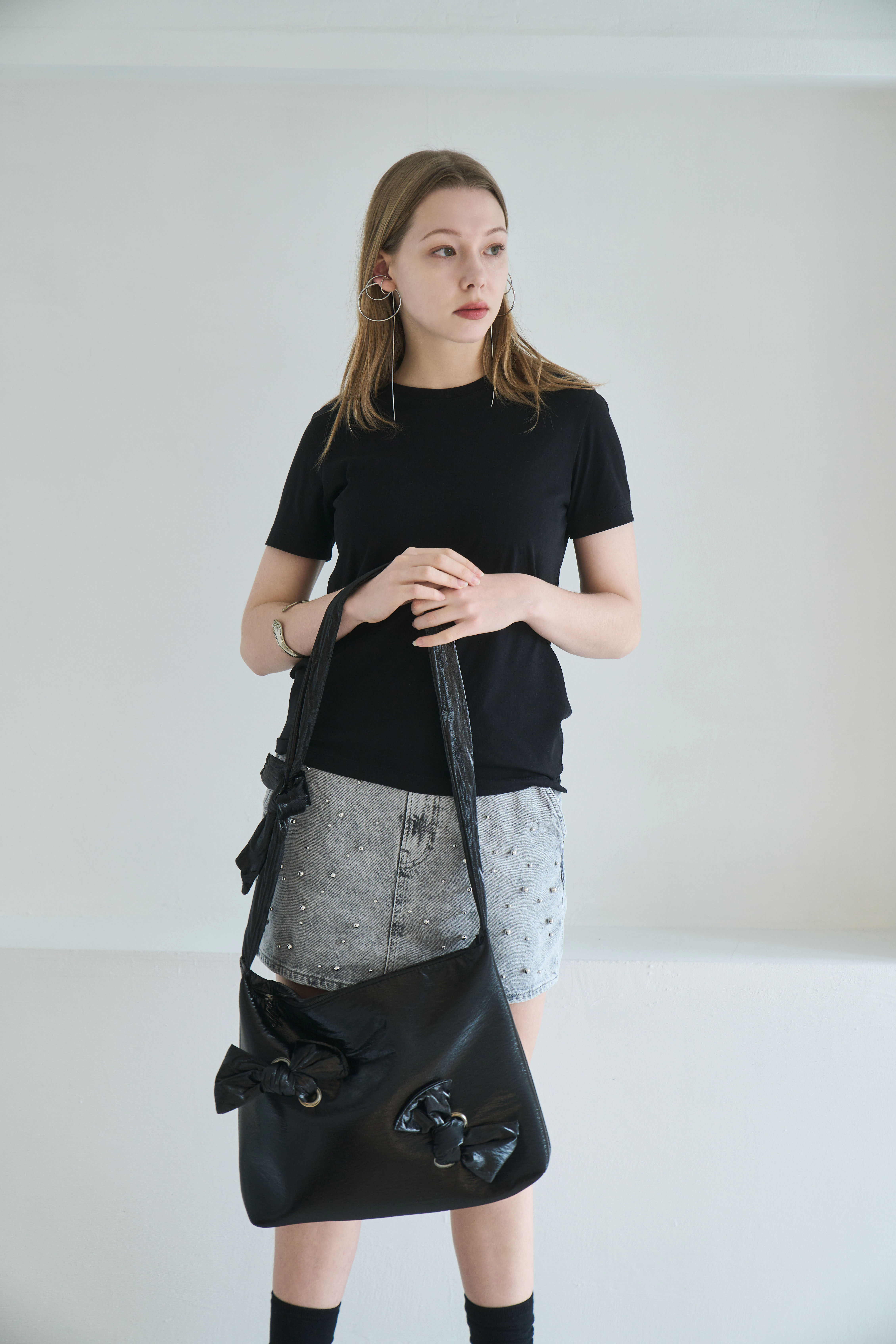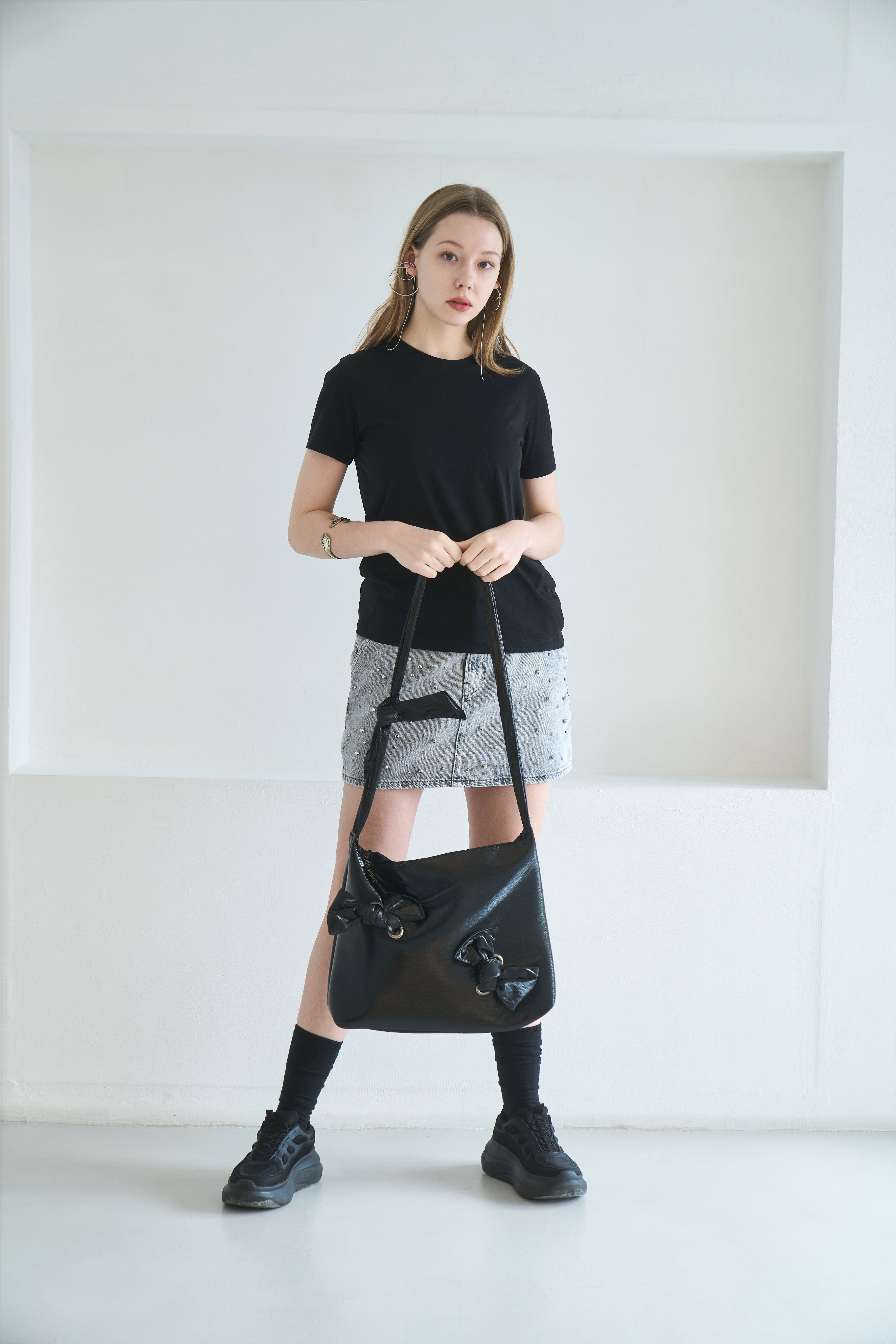 리본 타이 스타일로 스트랩을 매듭지어 길이 조절이 가능하여 숄더와 크로스로 맬 수 있습니다.