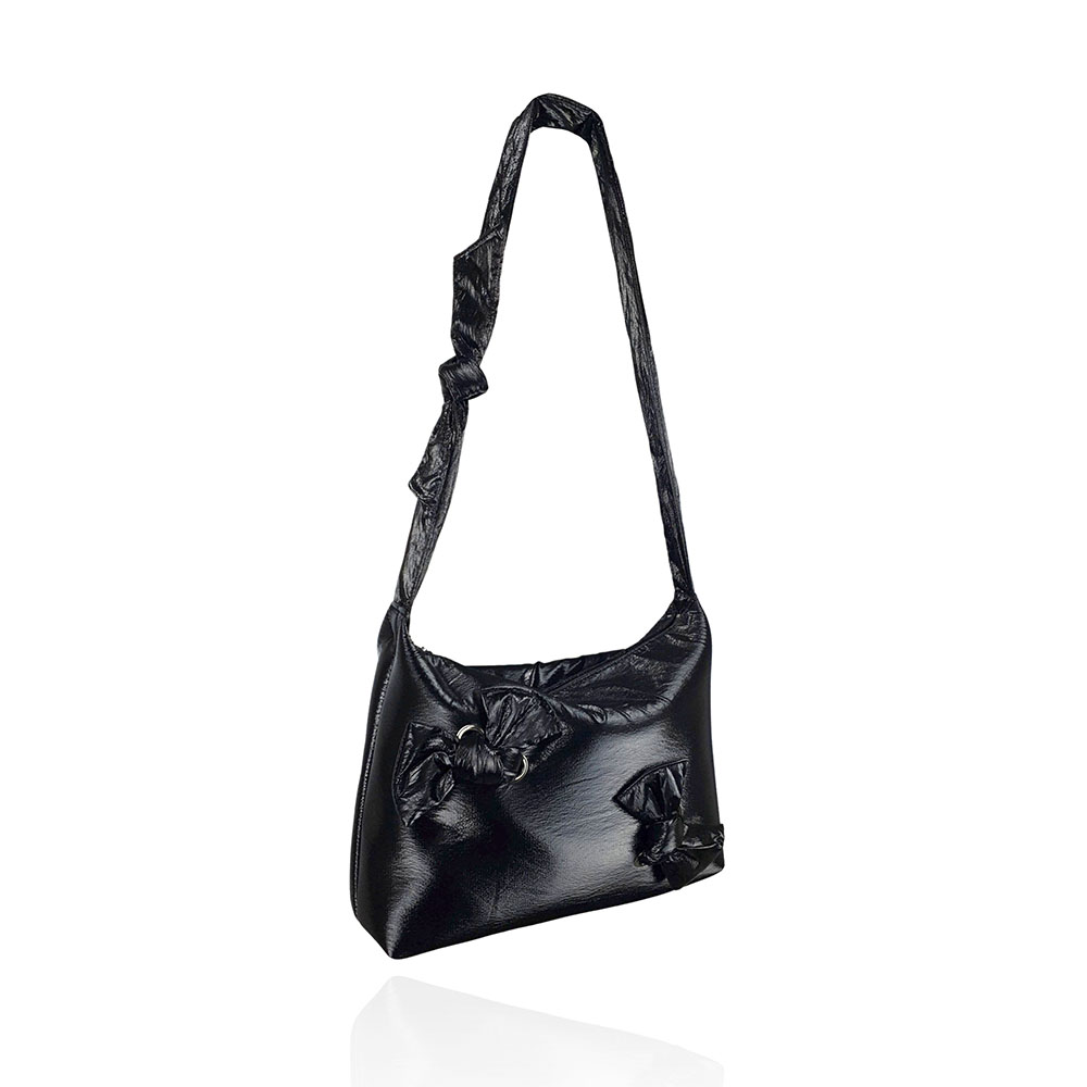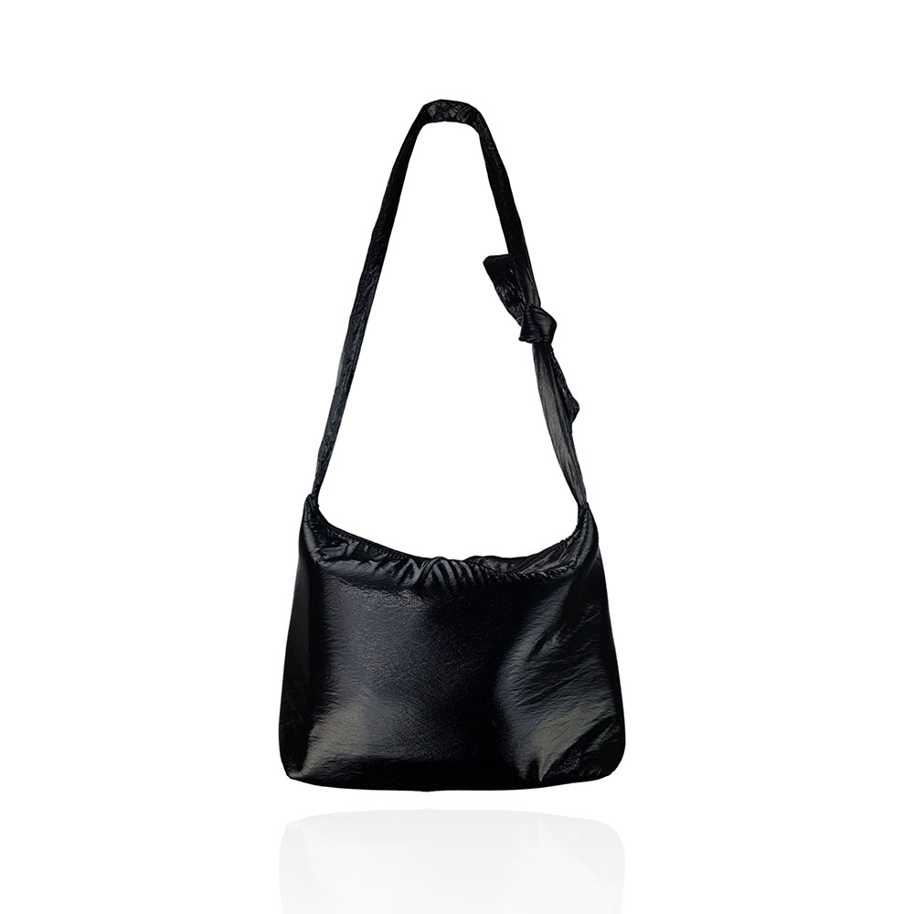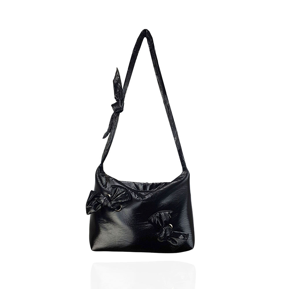 스트랩을 매듭지어 리본 타이 느낌으로 자유롭게 길이 조절할 수 있어 숄더와 크로스백으로 활용 가능합니다.