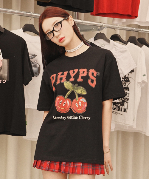 먼데이루틴 체리 반팔티셔츠 블랙