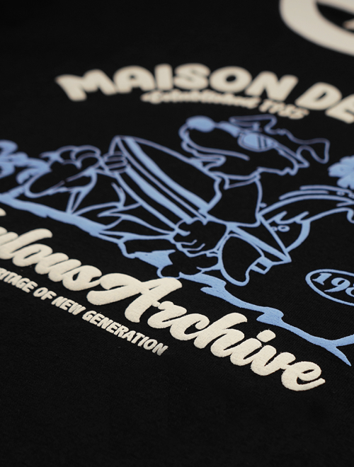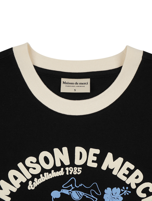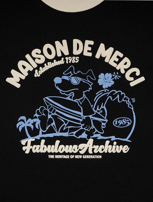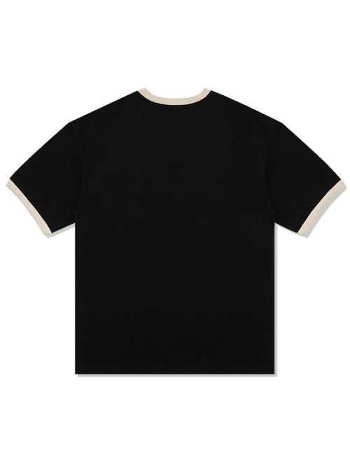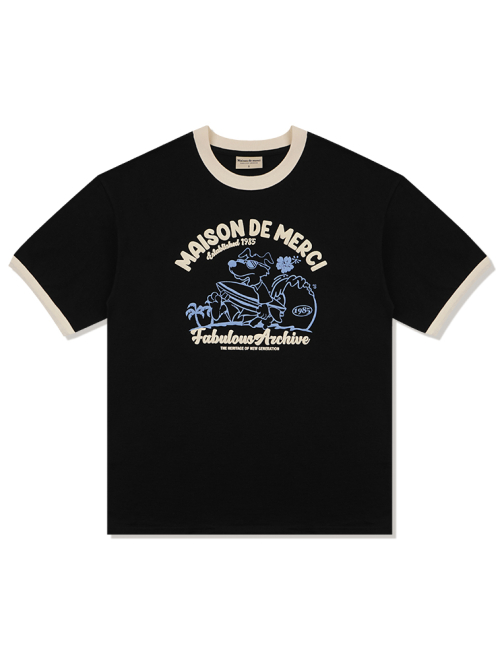 UNISEX 오버핏 퍼피서핑 링거 반소매 티셔츠 블랙(FCE2TS401M)