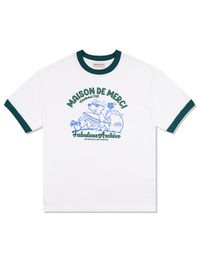 UNISEX 오버핏 퍼피서핑 링거 반소매 티셔츠 화이트그린(FCE2TS401M)