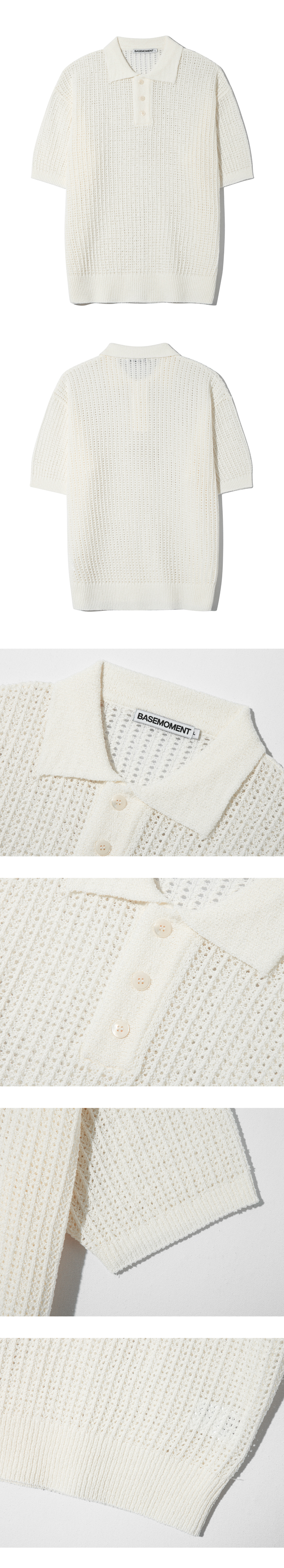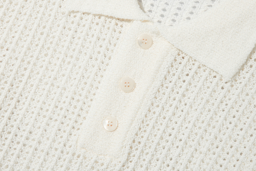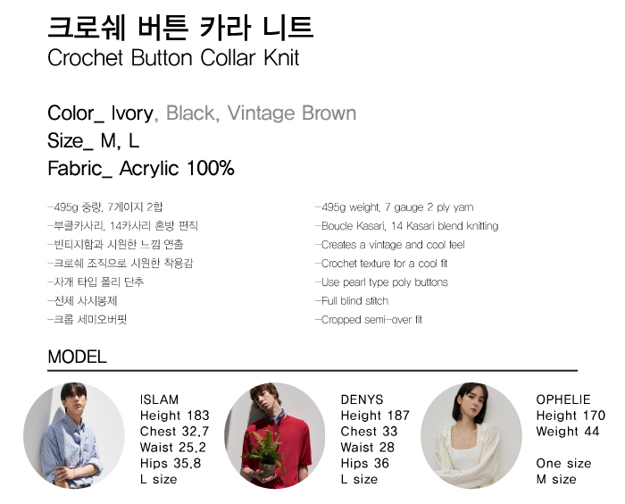 크로쉐 버튼 카라 니트 빈티지 브라운