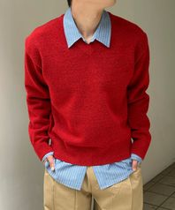 캐시라이크 브이넥 크롭 니트 보카시 레드